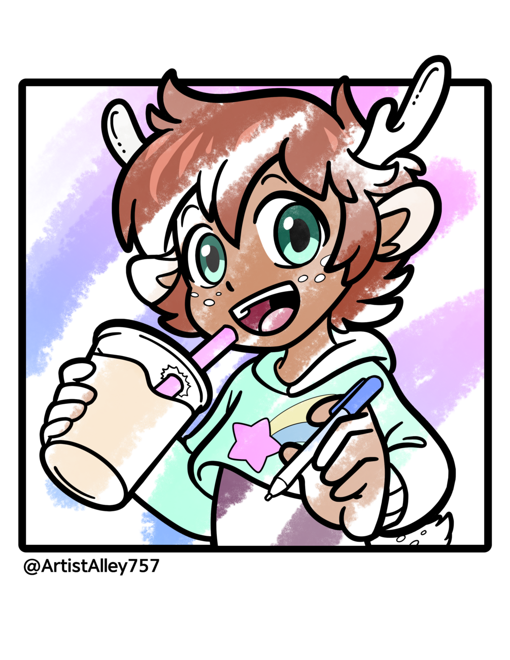 Print or digitally color our mascot, Rho. Tag us @ArtistAlley757 on Instagram and we'll feature yours in our story!